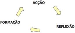 Na pesquisa, que aqui apresentamos alguns dados, nos orientamos pelas compreensões de formação continuada apresentadas e, também, utilizamos o modelo Formação, Ação e Reflexão — F@R, desenvolvido por Costa e Viseu (2007), que surgiu como um movimento que não se resume apenas a uma formação, mas também de integração de tecnologias digitais nas práticas educativas. Para os autores, esse movimento acontece de maneira cíclica, como mostra a Figura 1.