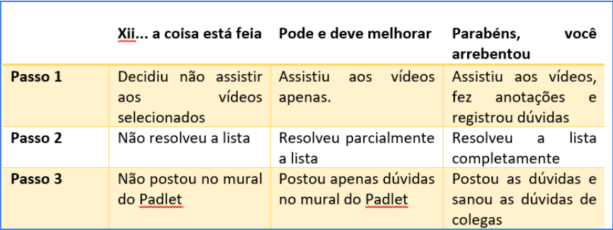 A primeira tarefa foi pensada a partir da prática dessa turma em assistir videoaulas que abordavam conteúdos diferentes daqueles enfatizados em sala ou não tinham uma qualidade didática adequada e levava o aluno a não utilizar o seu tempo de forma apropriada. Dessa forma, consistia em o aluno assistir algumas videoaulas acuradas pelo professor, alinhadas com um conteúdo de qualidade que foi trabalhado em sala.