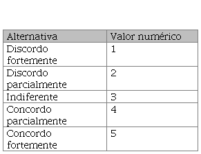 Para a análise das respostas, estas foram convertidas em valores numéricos de acordo com as informações apresentadas no Quadro 2 e, posteriormente, feita uma análise fatorial com o auxílio do programa estatístico PSPP.