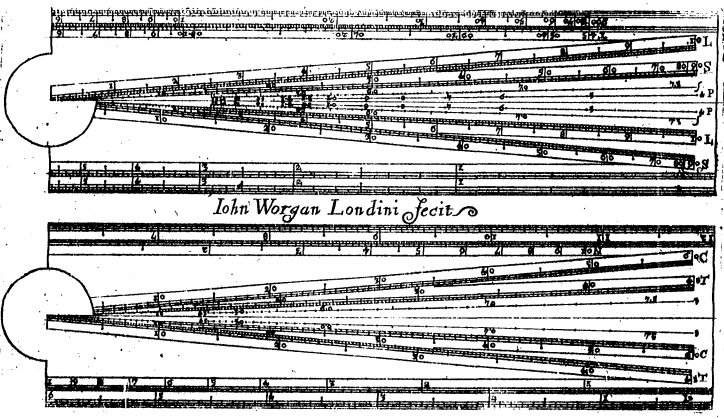 Las Matemáticas detrás de la escala de cuerdas contenidas en el Sector por John Worgan (1697)