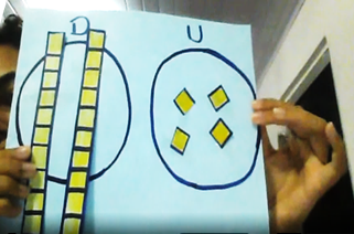 Na Figura 6, foram apresentadas as peças que representam as dezenas (D) e as unidades (U), enquanto na Figura 7 a aluna mostrou a confecção da peça que representa a centena. O material dourado foi idealizado por Maria Montessori, e favorece a compreensão das relações numéricas abstratas. Ele é utilizado para a aprendizagem do SND e para o trabalho com as operações (SILVA et al., 2020).