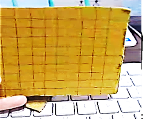 Observa-se pelos variados modelos de materiais construídos, que os alunos tiveram total autonomia para a produção, usando a sua criatividade. Essa atividade além de desenvolver o caráter criativo, por fazer com que eles aproveitassem diversos materiais recicláveis como papelão, tampinhas de garrafa e papéis, proporcionou a manipulação dos materiais em seus próprios lares, o que oportunizou uma aula prática em meio ao ensino remoto. Os alunos também confeccionaram o material dourado, conforme as Figuras 6 e 7.