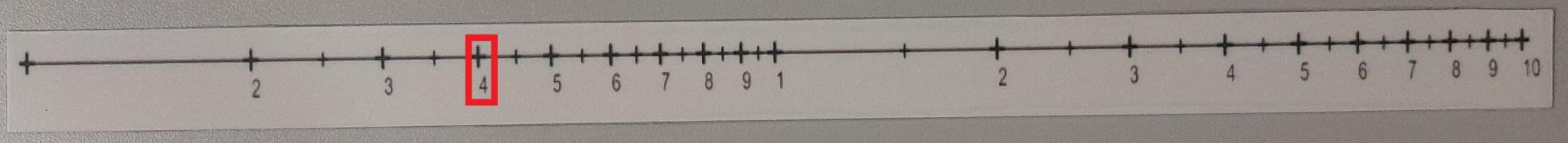 Agora, na régua Staffe, consideramos a metade da direita referente às centenas e a da esquerda referente às unidades de milhar, sendo assim encontramos o número 355 por aproximação na régua Staffe.