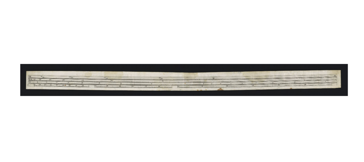 A carta encontra-se disponível na coleção Macclesfield da Biblioteca da Universidade de Cambridge, e junto com ela também foi encontrada uma impressão reversa da régua Transversarie (Figura 3), que apresenta todas as escalas contidas nessa régua.