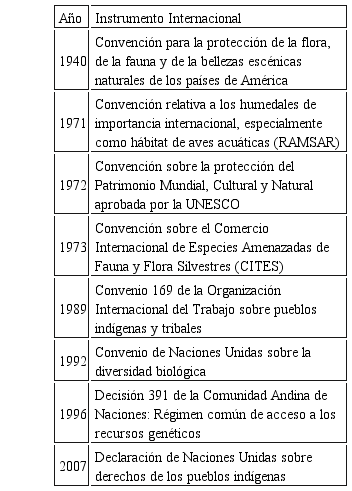 Hay que recordar también que, con anterioridad a los instrumentos indicados, el Ecuador se había adherido a la Convención para la Protección de la Flora, de la Fauna y de las Bellezas Escénicas Naturales de los Países de América (1940), la Convención Relativa a los Humedales de Importancia Internacional especialmente como Hábitat de Aves Acuáticas (1971) y la Convención sobre la Protección del Patrimonio Mundial, Cultural y Natural (1972). Todos estos instrumentos fueron factores claves que incidieron en la generación de normas, instituciones y políticas nacionales de conservación.