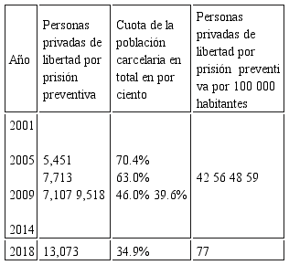 Para los fines de este análisis cabe mostrar cómo se han presentados los datos sobre la prisión preventiva desde el año 2001, lo cual coincide con la implementación del sistema acusatorio-adversarial en el año 2000 del corte anglosajón y, consecutivamente, la instalación de las llamadas unidades de Flagrancia en el Ecuador.