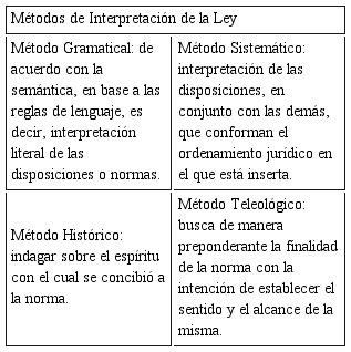 Existen métodos de interpretación que pueden definirse como formas de proceder que permiten realizar una tesis razonable, a continuación mencionaremos cuatro métodos de interpretación: