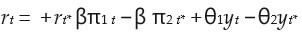 equation [1a] is equivalent to equation [1]. This formulation suggests that the monetary policy rate rt should increase when inflation and the output level of the economy are above the target inflation and the potential output, respectively, and it should decrease otherwise. There is an expanded form of the Taylor rule that incorporates inflation expectations: π t e +1. This model does not substantially differ from the original. The only difference is that the latter contains the neutral interest rate in real terms.