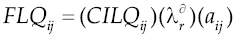 The Flegg’s location quotient, FLQij , is a function of the product of the crossed-holding location coefficient, CILQij , multiplied by lamda (λ∂ r ), and by the national technical coefficients, aij , which is denoted as: