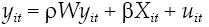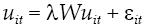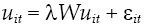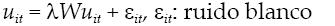 Wiuit : rezago espacial en el término del error, su existencia garantiza que los choques que ocurren en una comuna vecina de i inmediatamente se propagan a i .