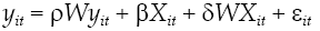 4) Modelo de Durbin. Rezago espacial en la variable dependiente y en las independientes. Supone que: