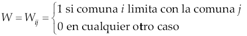 [14]El supuesto en la ecuación [12] establece que la relación espacial se presenta por dos mecanismos: el primero se da por medio de la relación directa entre la variable endógena y su rezago espacial, y el segundo por choques aleatorios en las unidades vecinas, los cuales tienen un efecto contagio sobre la unidad i.