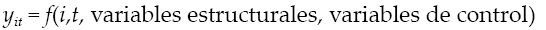 Sea yit el valor de la variable dependiente en la unidad territorial i y el tiempo t, es decir: