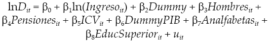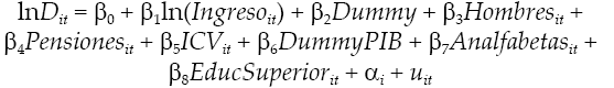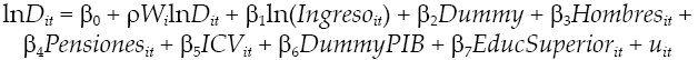 [2]que puede ser estimada utilizando la metodología tradicional de datos de panel, en la cual: