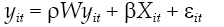 [11]En este modelo la relación espacial se da por medio del denominado contagio, donde los choques exógenos se propagan entre las unidades vecinas.