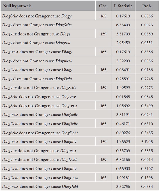 Hence, what we seek to investigate is how monetary shocks, represented by changes in the Selic rate, affected the Variables central to the economic performance in Brazil. Specifically, the intention is to measure the effects of a rise in the Selic rate on prices, which is the main objective of monetary policy, and its adverse effects on: 1) the GDP growth rate; 2) the real appreciation of the domestic currency, and 3) the trajectory of spending on the public debt service.