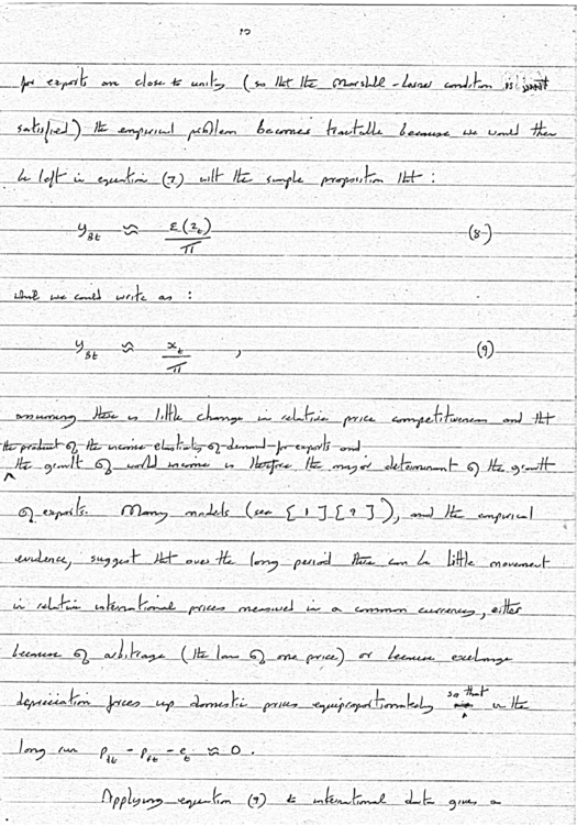 Muchos modelos (véanse Ball et. al., 1977 y Wilson, 1976) y la evidencia empírica sugieren que en el largo periodo puede haber poco movimiento en los precios internacionales relativos medidos en una moneda común, ya sea por causa del arbitraje (la ley de un sólo precio) o porque la depreciación del tipo de cambio induce un aumento equiproporcional de los precios nacionales, de tal forma que en el largo plazo (pdt - pft - et ) ≈ 0.
