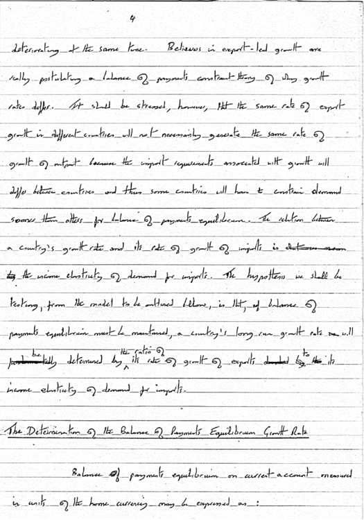 En una economía en crecimiento, la condición de equilibrio de la balanza de pagos a través del tiempo es que la tasa de crecimiento del valor de las exportaciones es igual a la tasa de crecimiento del valor de las importaciones, i.e.: