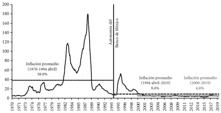 El mayor logro de la autonomía ha sido la reducción evidente de la tasa de inflación. Esto se debe, principalmente, a que la autonomía ha representado una garantía de que el poder adquisitivo de la moneda no es objeto de manipulaciones por parte del gobierno central. Este mecanismo resuelve la inconsistencia temporal comentada al evitar que el Gobierno Federal implemente un estímulo a la actividad económica mediante expansiones monetarias de corto plazo, cuyos beneficios se desvanecen en el largo plazo, pero dejan un impacto en el nivel de precios.