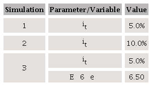We can illustrate this tendency of the rate of change of the exchange rate by means of simple simulations. We do this by first replacing equation [9] into [6] and then giving values for all the parameters, namely, the initially expected level of the exchange rate and the other independent variables17.