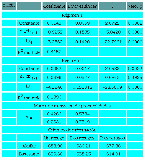 modelo de cambio de régimen, e identificamos dos regímenes, alta y baja