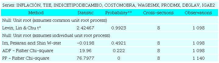 En este ultimo caso, es importante notar que la inflación no es estadísticamente significativa, no tiene ningún efecto sobre el IGAE (de igual manera la TIIE y el costo de la mano de obra no tienen ningún efecto) y la productividad laboral sí tiene efecto; por lo tanto, se corrobora el postulado de que incrementos salariales no son inflacionarios y sí contribuyen al IGAE, pues están acompañados de aumentos en la productividad laboral.