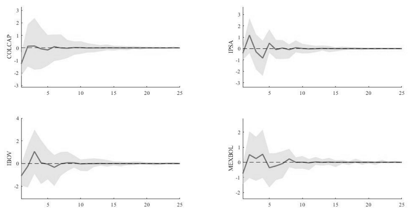 menor escala con el índice COLCAP (Colombia Capital). El shock se disipa por