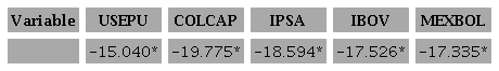 de Valores de São Paulo) y el índice MEXBOL (Mexican Bolsa). Lo mismo sucede en