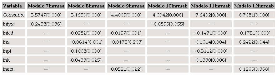 En cuanto al papel de la productividad, las regresiones sugieren que sus variaciones son un componente significativo para el aumento de las remuneraciones medias, aunque sólo para la mano de obra con educación alta; la evidencia es consistente con la conjetura de la teoría marginalista, la cual coloca a la productividad marginal del trabajo como el mecanismo de ajuste del salario y la demanda de trabajo. A pesar de este resultado, es importante acotar que la involución de la productividad y la heterogeneidad de la malla productiva de la economía mexicana representan una condición fundamental del lento crecimiento de las remuneraciones medias. En la misma línea de análisis, nuestras estimaciones confirman que la profundización de la capacidad de innovación mejora las remuneraciones de la mano de obra calificada. Este resultado es consistente con la hipótesis de la teoría del crecimiento endógeno sobre la determinación del salario antes mencionada (Romer, 1990; Vandenbussche, Aghion y Meghir, 2006). A pesar de este resultado, es importante mencionar que, a nivel industrial, apenas 13% de la fuerza laboral en el sector manufacturero corresponde a mano de obra calificada, condición que restringe significativamente los efectos dinámicos sobre la tasa salarial.