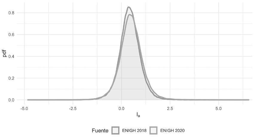 Como se aprecia, la distribución de la tasa de ahorro con datos de la ENIGH 2020 tiene ligeras diferencias respecto a la tasa construida con la ENIGH 2018, en particular presenta una ligera asimetría a la derecha de la distribución.