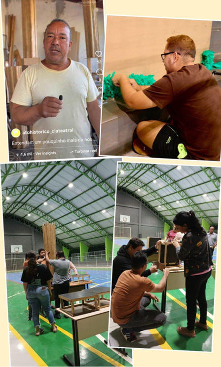 Essa dimensão formativa foi reforçada pela presença de um artesão convidado, responsável por orientar a confecção do cenário junto aos alunos do IFMS e da UFMS. A convivência entre o saber técnico e o acadêmico materializou uma perspectiva dialógica de educação, em que todos ensinam e aprendem simultaneamente. A oficina tornou-se, assim, um espaço de intercâmbio cultural e residência artística.