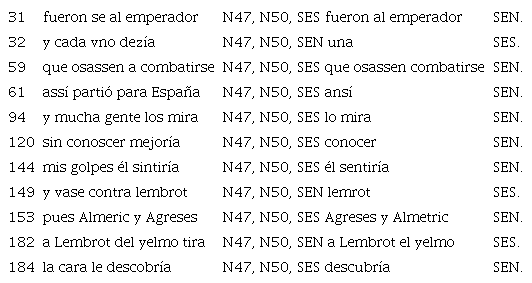 No es éste el único ejemplo en favor de nuestra hipótesis acerca de que Steelsio se basó en una edición perdida de Nucio. Uno de los romances que no procede de la Crónica de Ocampo y aparece en ambas ediciones es el de la duquesa de Loreyna, En la ciudad de Toledo, que ya había aparecido en el Cancionero de romances s.a.Rodríguez-Moñino (1967, p. 16) se da cuenta de ello, pero se limita a anotar, sin dar explicación alguna, que “En la ciudad de Toledo figura en el Cancionero de romances s.a. y probablemente Nucio y Steelsio lo tomaron independientemente de una fuente común, acaso de un pliego suelto hoy perdido”. Como sabemos, las fuentes principales de Nucio para el Cancionero de romances fueron los pliegos sueltos (Garvin 2016a). Parece muy improbable, conociendo las costumbres editoriales de Nucio, que disponiendo de ese texto acudiera de nuevo a otras fuentes, más aún cuando las ediciones posteriores del Cancionero de romances no muestran -a diferencia de lo que ocurre con otros textos- que Nucio considerara defectuosa la versión de la edición sin año. Sin embargo, una comparación detenida de los textos revela que el de Steelsio es más cercano en muchos casos al de las dos ediciones del Cancionero de romances (N47 ), que no a la edición de Nucio conservada de los Romances de Sepúlveda. De hecho, Steelsio (SES ) sigue a N47 incluso en ciertas particularidades ortográficas (vv. 61, 144 o 184, por ejemplo), y es la edición antuerpiense de Nucio (SEN ) la que ofrece lecciones divergentes. Sirvan estos ejemplos10: