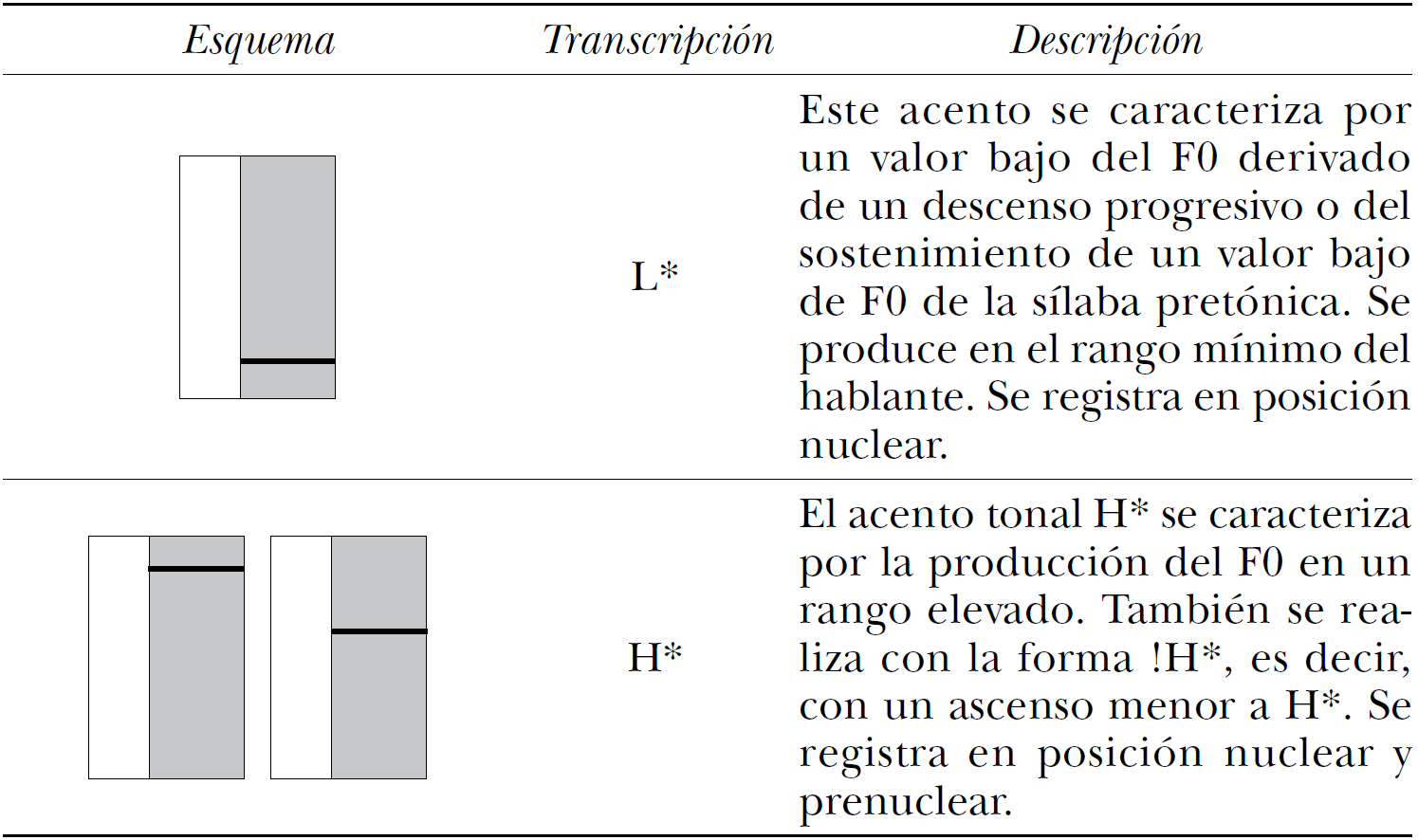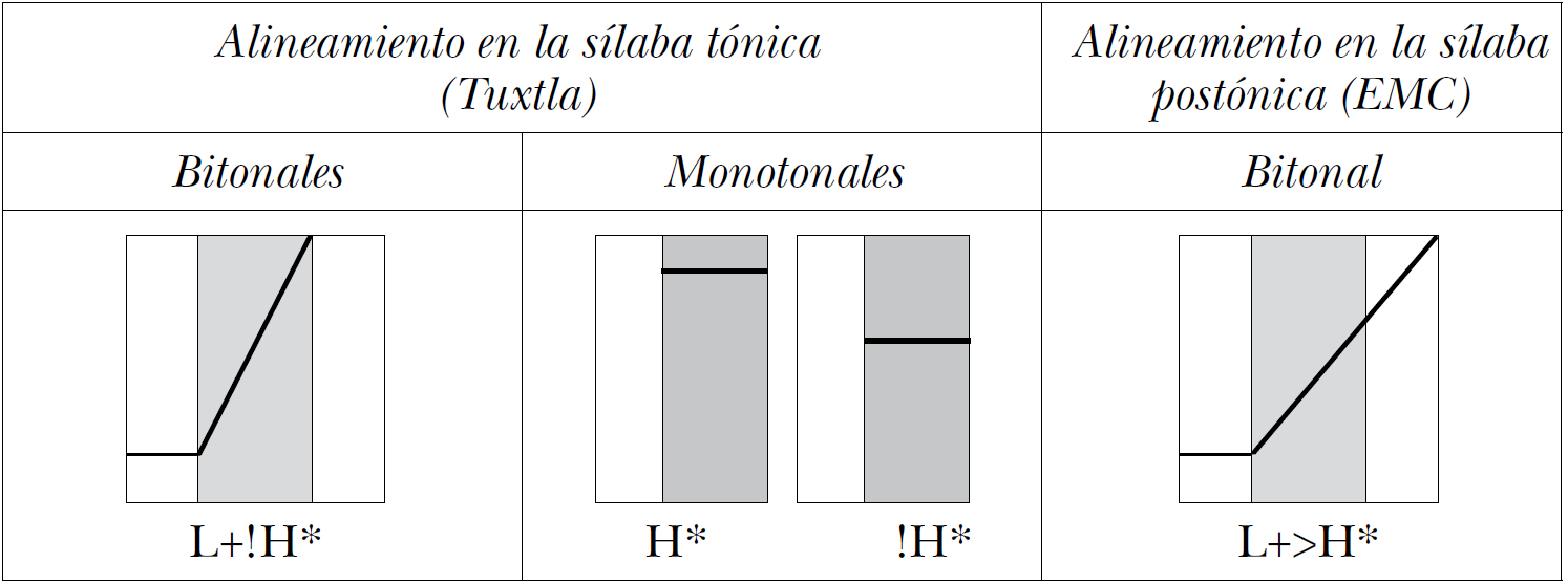 En los siguientes apartados se ofrece el repertorio de acentos tonales y tonos de juntura y se presentan las configuraciones nucleares y prenucleares registradas en los datos de Tuxtla Gutiérrez. Se observarán los rasgos prosódicos que distinguen esta variedad frente a los datos de la Ciudad de México y de Mérida, Yucatán. También se exponen los factores sociales que influyen en la realización de una determinada configuración tonal.