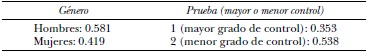 Para dar cuenta de la distribución social de la forma nuclear bitonal, se elaboró un análisis estadístico con Goldvarb (Sankoff et al. 2012), atendiendo a las variables: i) género; ii) grupo de edad; iii) nivel de instrucción y iv) tipo de prueba -mayor o menor grado de control en los datos. El análisis binomial de ascenso y descenso (Tabla 9) seleccionó como significativo el factor género y tipo de prueba. Los resultados mostraron que el acento nuclear bitonal es favorecido por los hombres (0.581) y el menor grado de control en las pruebas (0.538), es decir, en las entrevistas sociolingüísticas.