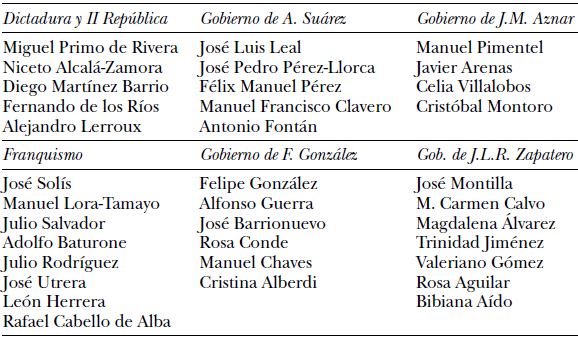 Antes de pasar a presentarlos individualmente, se hace necesario recordar que el siglo XX es una época bastante compleja desde el punto de vista histórico, político e ideológico en España, con numerosos cambios de gobiernos con ideologías muy diferentes y varios regímenes que van desde la dictadura hasta la democracia, con una guerra civil de por medio (Casanova y Gil 2009; Martorell y Santos Juliá 2014). No nos detendremos a explicar el ideario imperante en cada una de ellas por ser algo ampliamente conocido, pero sí nos parece oportuno presentar a cada uno de los políticos que conforman la muestra dentro de la etapa histórica en la que se encuadran y especificar el cargo que ostentan y en qué momento concreto tiene lugar.