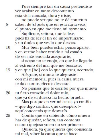 Hasta el momento, el corpus lírico de Francisco de Terrazas se compone por la “Epístola” y una decena de sonetos, cuya lectura en nuestro tiempo desautoriza en forma categórica la “medianía” impuesta al primer poeta novohispano por la rudeza innecesaria de don Marcelino Menéndez y Pelayo (1893, t. 1, pp. XXX ss.).