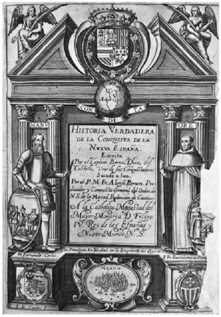 La portada que figua en la Imagen 1 es sin duda un registro histórico de su época. Sin embargo, el frontispicio es también un arco triunfal, y una alegoría por excelencia preside el conjunto: el escudo de armas del monarca español. Éste, junto con el de Cortés, está en lugar de instituciones o linajes. Así también las dos figuras humanas de Cortés y Olmedo, las figuras cartográficas del hemisferio y de la ciudad, y las sucintas palabras latinas, todos ellos representan mucho más de lo que vemos. Lo propio acontece en La aprendiz de bruja, pero con un giro moderno. Carpentier cita a Díaz del Castillo, pero transformando el material fundamental por medio de un mecanismo dantesco “alegorizador”, semejante al del teatro alto moderno o al del frontispicio de la Historia verdadera. Mientras que Díaz del Castillo y el Antiguo Testamento pretenden presentar personajes históricos en sus textos, Carpentier, emulando a Dante, amplifica la especificidad personal y la ubica más allá de sus contingencias históricas.