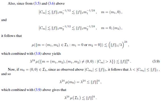Given λ > 0, let I= {m : |Cm|> λ} . Now, if m= (m1, m2) is in I. and m1 · m2 0, by (3.7) we have