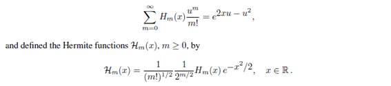 The Hermite functions constitute an ONS in R with respect to the Lebesgue measure there, and are defined as follows [5, 12, 14]. Szegö introduced the Hermite polynomials, Hm(.), in Chapter V of [12]. Earlier, Hille had also considered the Hermite polynomials, and proved some remarkable formulas and estimates [5, 14]. In particular, Hille considered the generating formula