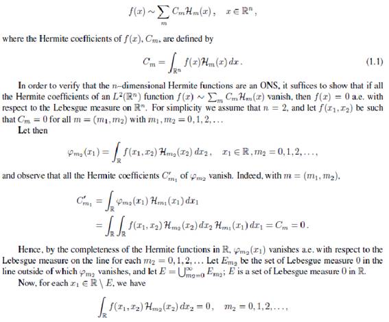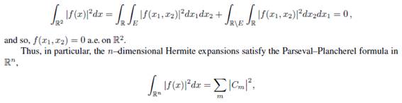 and by the completeness of the Hermite expansion in R, f(x1, x2) = 0 a.e. x2 in R whenever x1 ∈ R \ E. Then, by Tonelli’s theorem, on account of the above observations it follows that