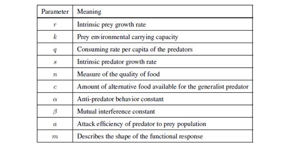 Table 1.1: The parameters of the system (1.1) and their ecological meanings.