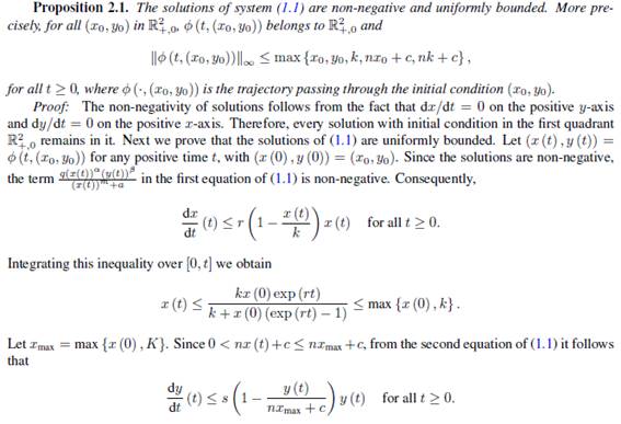 System (1.1) describes the interaction between prey and predators. hence, the solutions of this system must be bounded and non-negative. These properties are guaranteed by the following proposition.