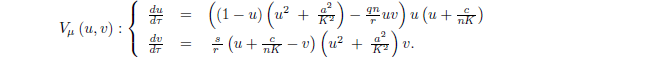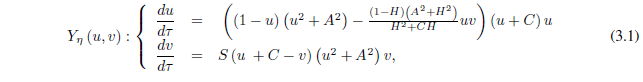 Anotaremos u1=H, la raíz real positiva que siempre existe para p(u) y por Pe = (H,H +C), el punto de equilibrio que existe en .