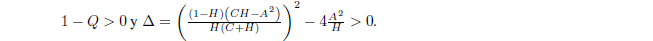 Tres puntos de equilibrio positivo, si y sólo si, 1-Q >0 y ∆ >0.