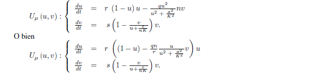 Además, mostramos la existencia de diferentes tipos de bifurcaciones, entre ellas las de Hopf y la homoclínica. Los resultados analíticos son discutidos desde una perspectiva ecológica.