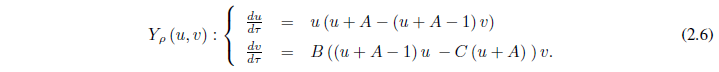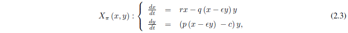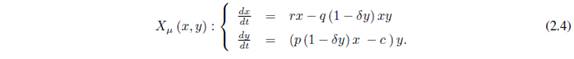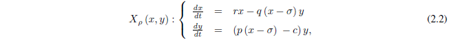 [2.1]donde x(t) e y (t) son los tamaños de las poblaciones de presas y depredadores en el tiempo t ≥ 0, respectivamente (como se considerará en todo el resto del trabajo).