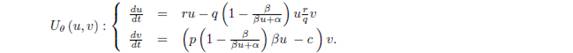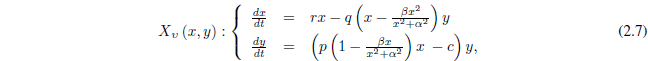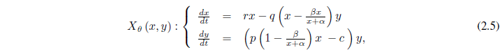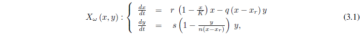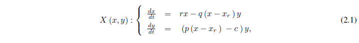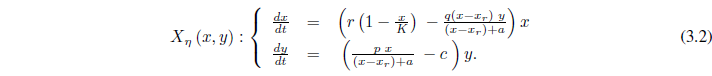 Siempre se debe cumplir que x > xr, para que el sistema exprese un modelo de depredación. Los parámetros son positivos y sus significados ecológicos, en este y los siguientes modelos, son: