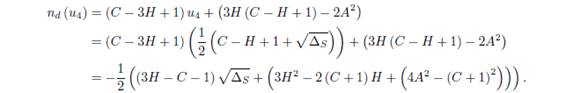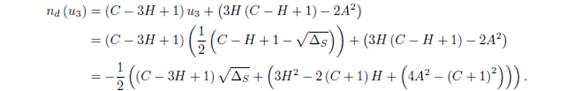 Demostración: a) Evaluando el factor nd(ue)=(C-3H+1)ue+(3H(C-H+1)-2A2) en (u3, v3) y (u4,v4), se tiene: