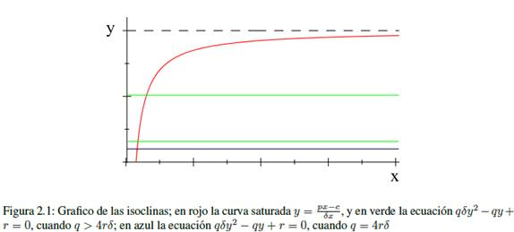 Los puntos de equilibrio son (0,0) y los determinados por la intersección de las isóclinas, las cuales son: