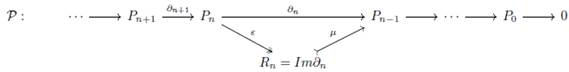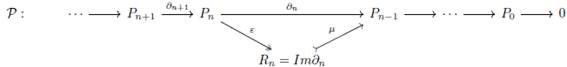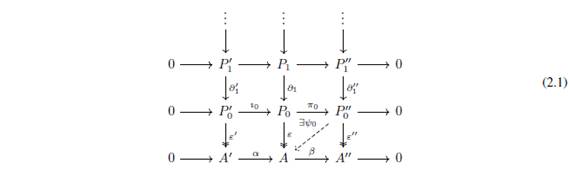 exacta corta de complejos de cadenas donde P=P’⊕P’’ y tal que el diagrama siguiente es conmutativo